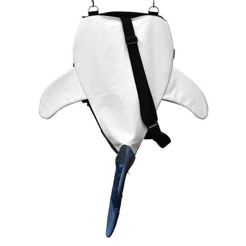 たっぷりの収納力を持った斜め掛けで使用するジンベイザメ形ボディバッグ、通称デカザメ。