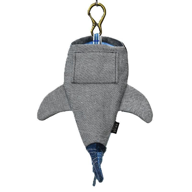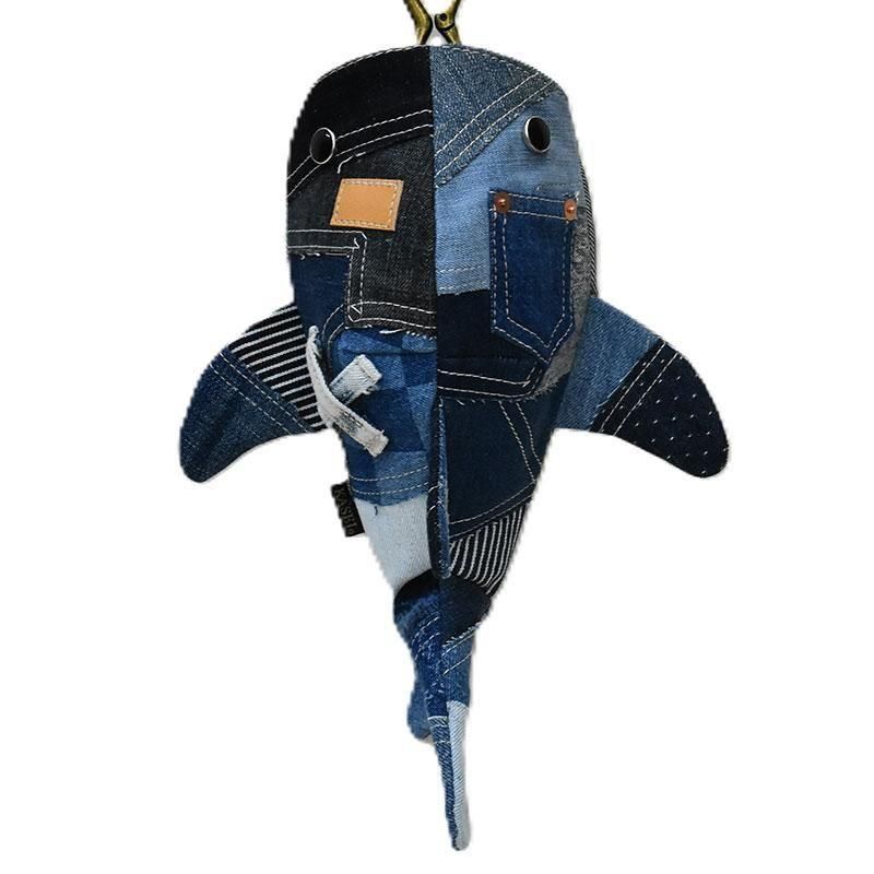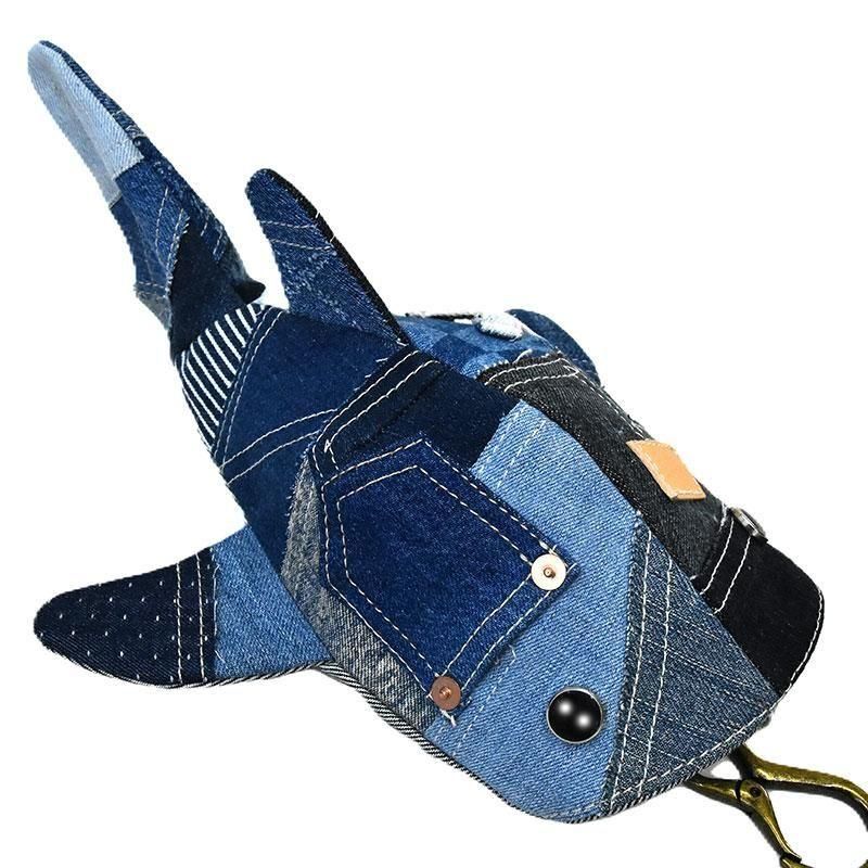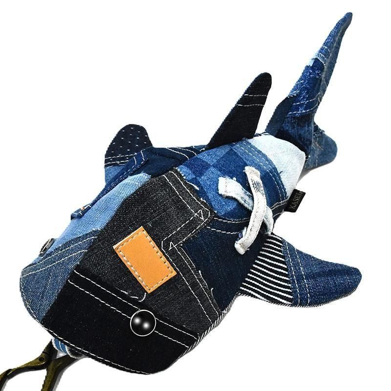 ユーズドジーンズを解体してリメイクしたサメ形携帯ポーチ(チョークバッグ)です。