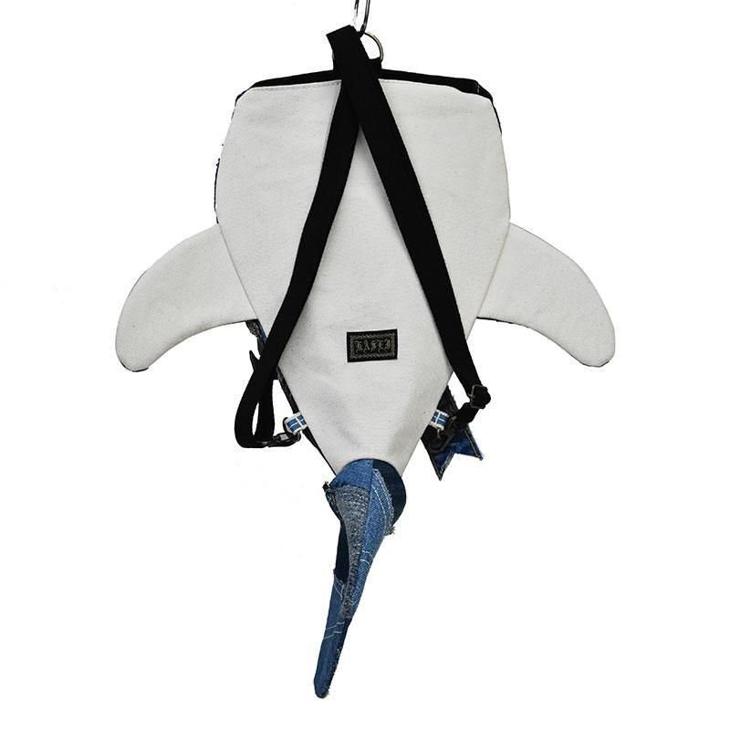 ユーズドジーンズを使ったジンベイザメの形をモチーフにしたリュック「小サメ(ちいさめ)」です。
